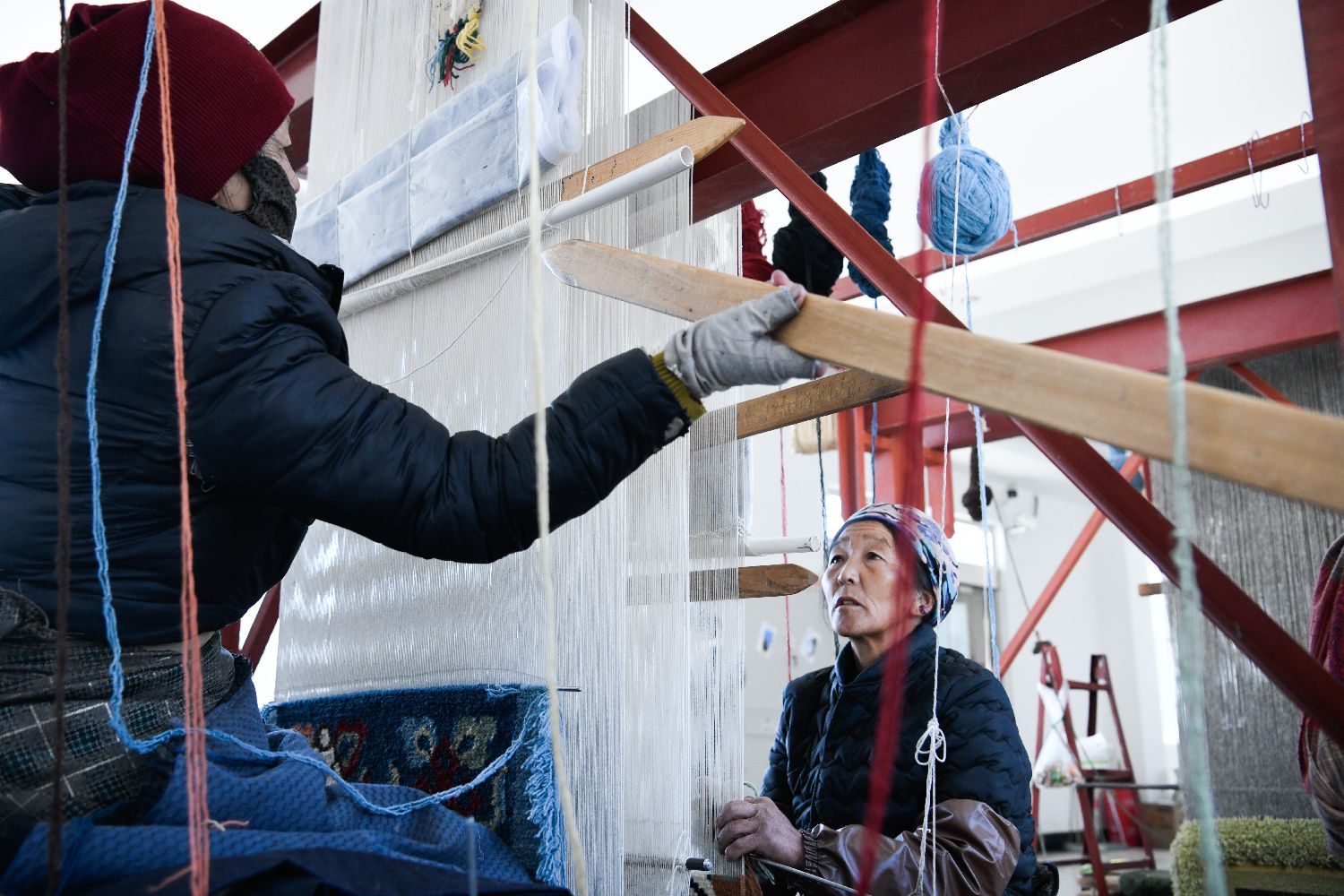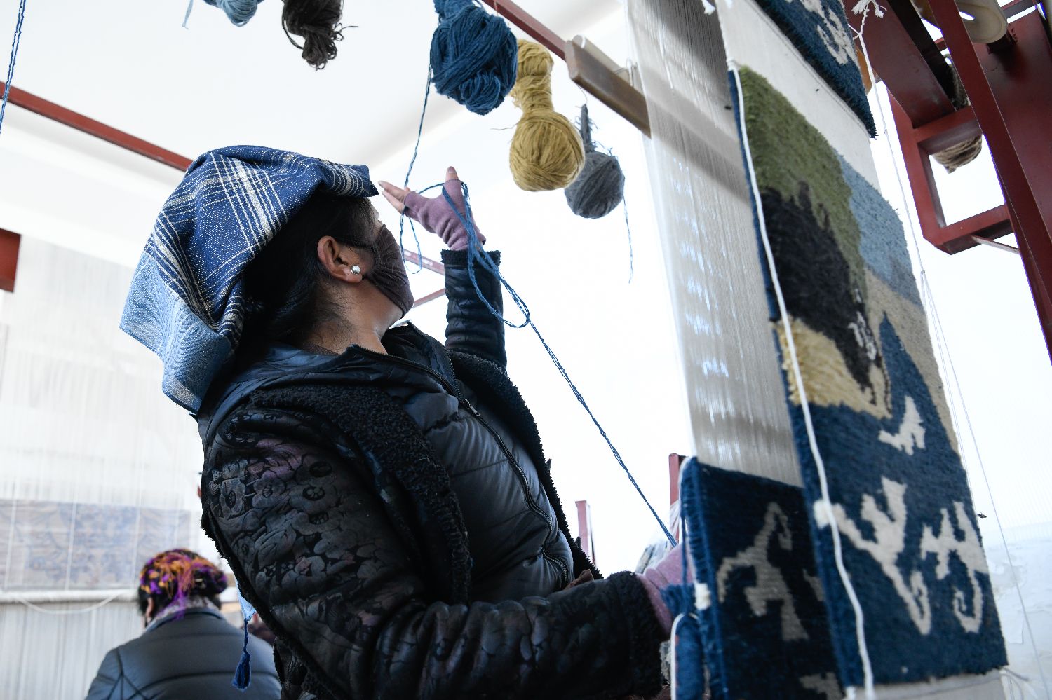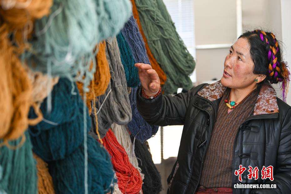 2024年,企业成功获评西藏自治区级绿色工厂,在绿色生产与技艺传承的道路上迈出坚实一步。除了坚守匠心,企业更以产业赋能民生。依托传统手工艺带动22名当地妇女就近就业增收,组建起一支优秀“织女”队伍,人均年增收3.3万元人民币。图为工人在挑选编织藏毯的毛线。中新网