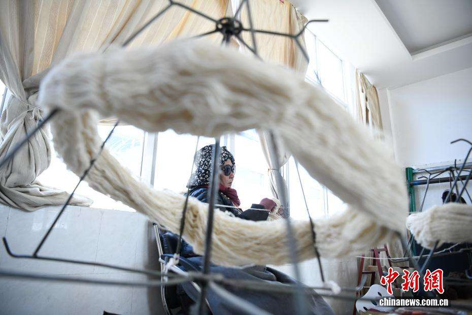 工人在整理毛线。中新网