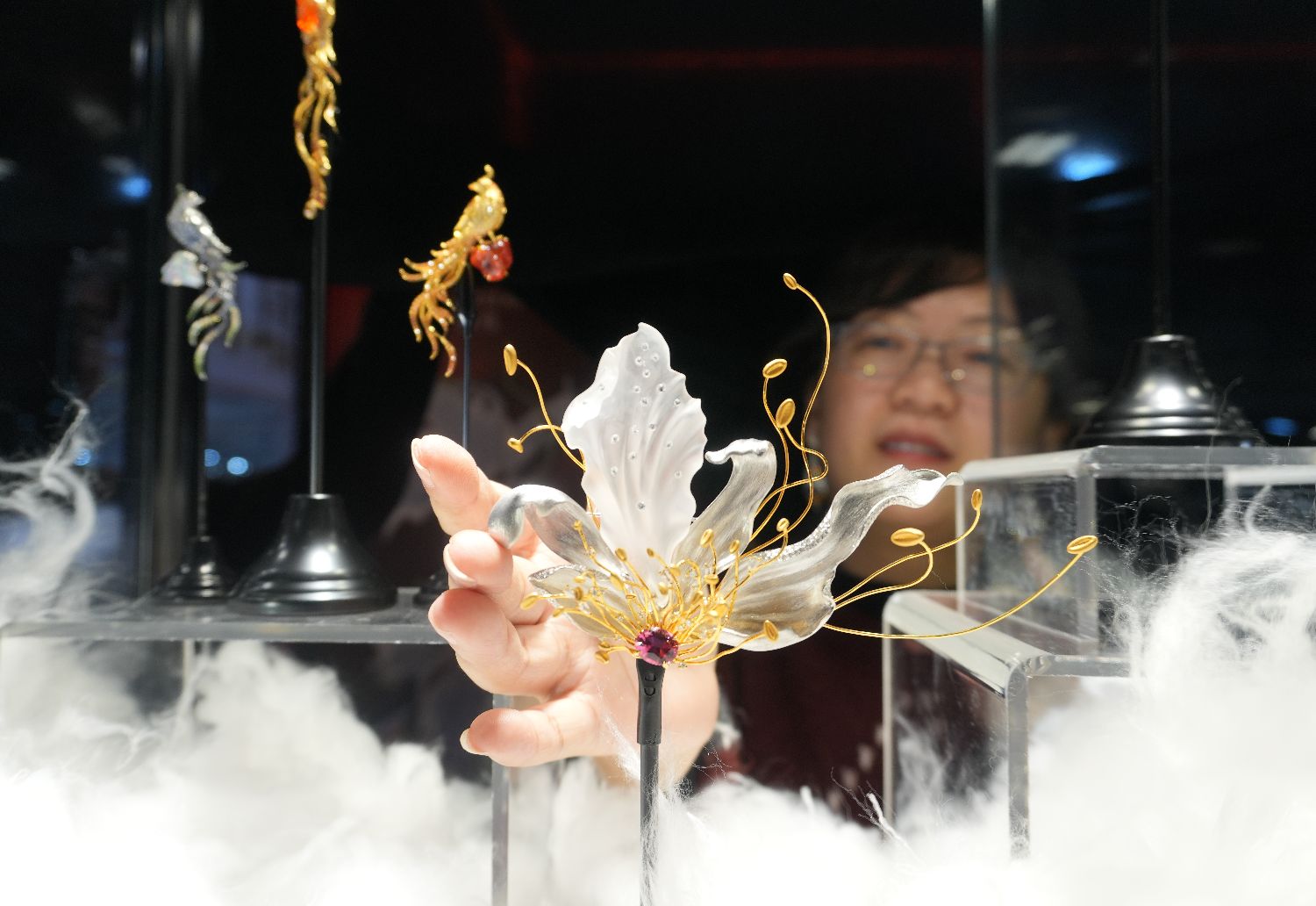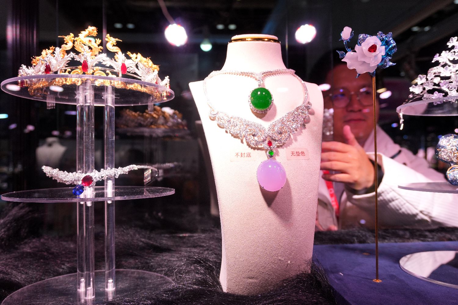 展商摆放珠宝饰品。