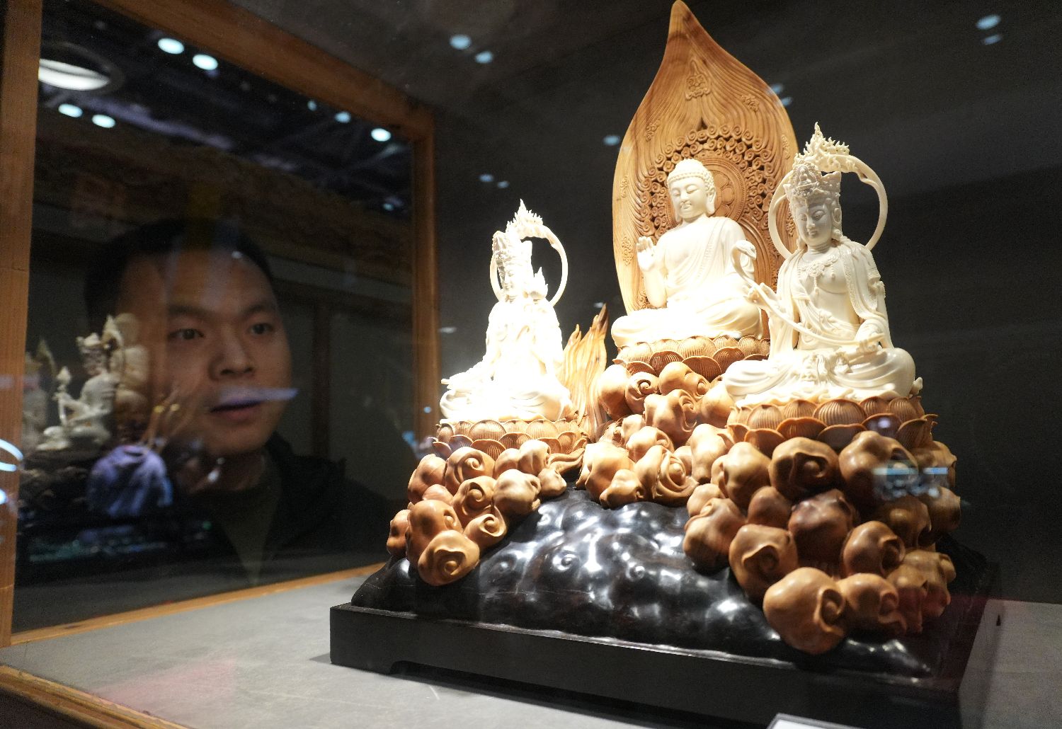观众参观猛犸牙工艺品。