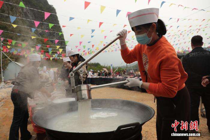 近日,在广西大化瑶族自治县大化镇双排村,大化榨粉“非遗技艺比拼·民俗趣味竞技”系列活动吸引民众参与。生榨米粉技艺比拼、千人共品榨粉、嗦粉大赛、抓七百弄鸡比赛、抓猪比赛、挑米竞速比赛、浑水摸鱼等活动轮番上演,现场欢声笑语不断。图为小朋友体验磨米。中新网