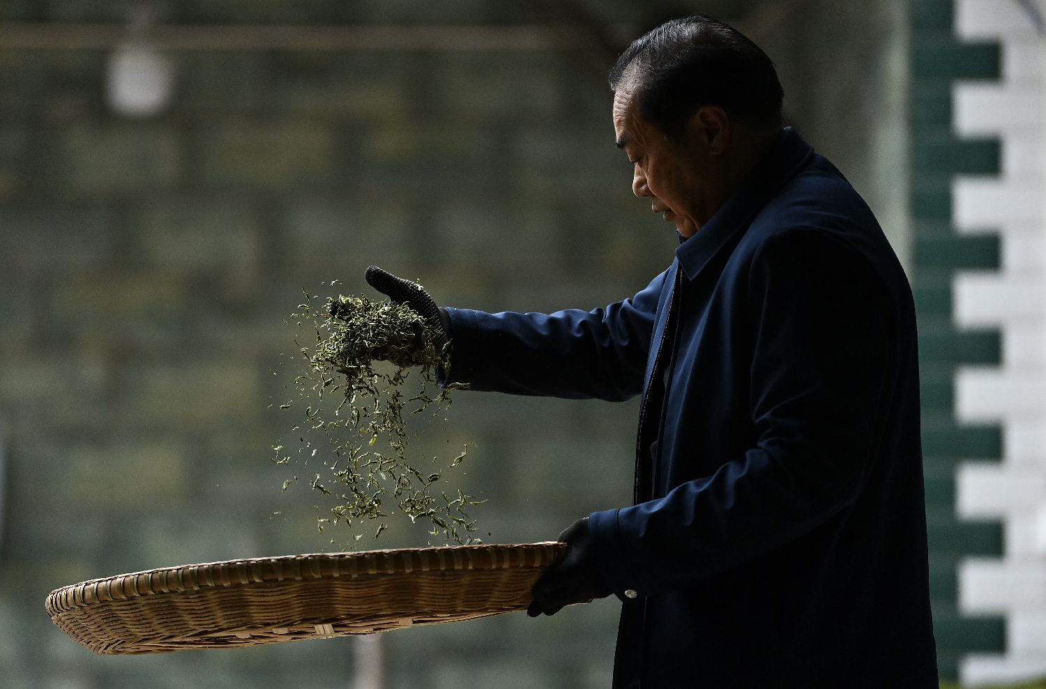 3月24日,在重庆秀山土家族苗族自治县钟灵镇,工人展示传统制茶技艺。中新社