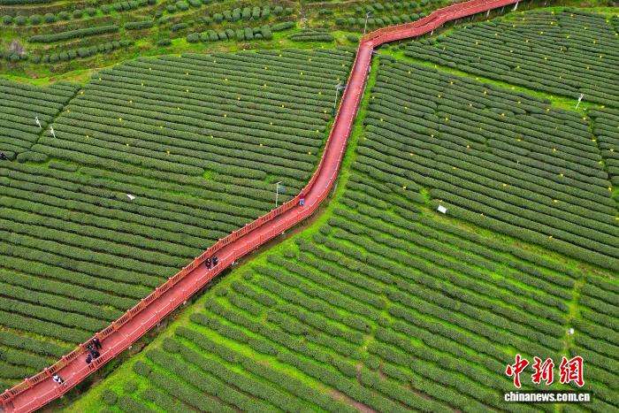 3月24日,重庆秀山土家族苗族自治县钟灵镇万亩茶园满目青翠,茶农抢抓春季采茶黄金期,穿梭林间采摘鲜叶、赶制新茶,山间茶香四溢。中新社