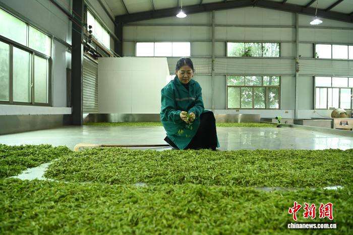 3月24日,重庆秀山土家族苗族自治县钟灵镇工人检查晾晒的茶叶。中新网