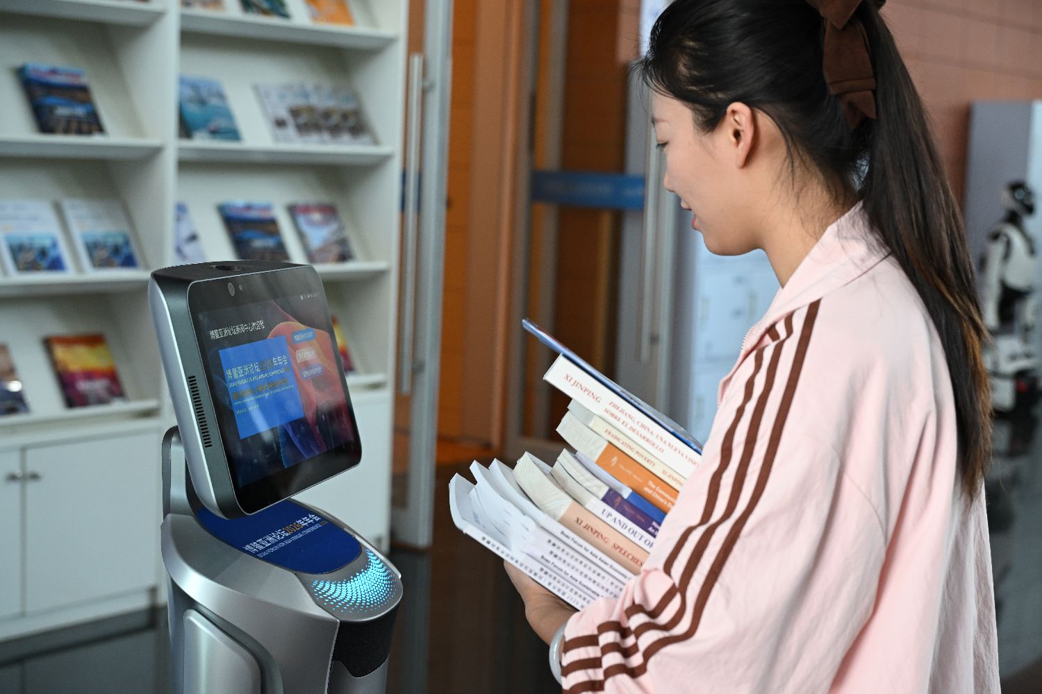 3月24日,海南博鳌,与会人员通过机器人查询博鳌亚洲论坛2026年年会信息。