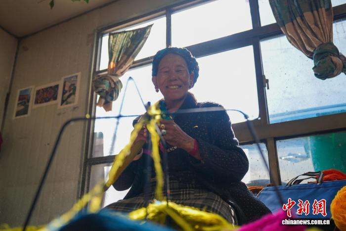 截至目前,合作社累计销售各类手工编织产品280余件,实现直接经济增收约134万元人民币,切实拓宽了乡村妇女增收渠道。图为合作社员工普布普赤正在操作捻线工序。