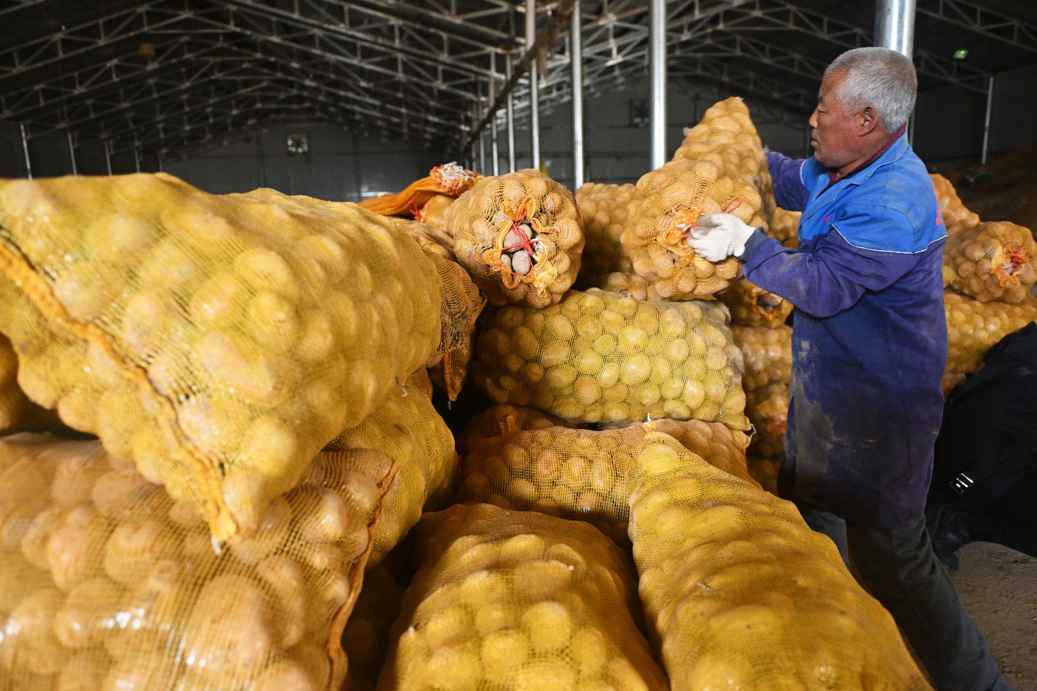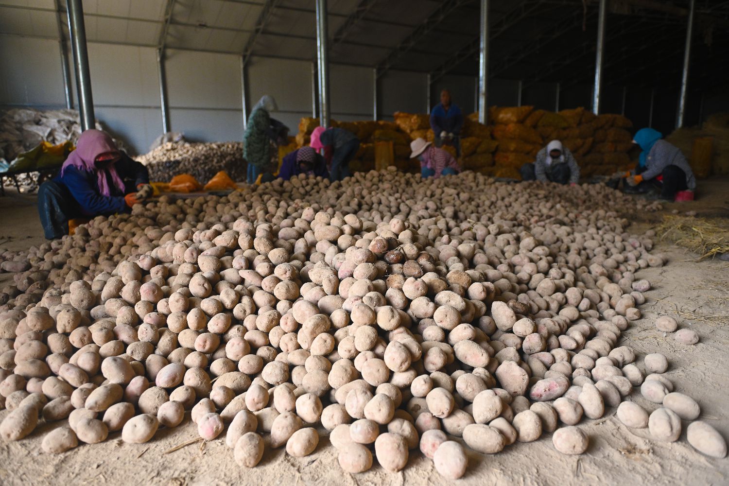 连日来,“中国薯都”甘肃定西的马铃薯原原种和原种正值扩繁选种忙。脱毒苗作为马铃薯的“芯片”,必须在无菌环境下生长,一株脱毒苗扩繁次数不能过多,一至两年后必须重新剥离再繁,确保种源纯净。2025年,定西的种薯企业生产原原种18.13亿粒,覆盖中国马铃薯产区,出口至多个共建“一带一路”国家和地区。图为3月29日,在位于甘肃省定西市安定区聚鑫牧草农民专业合作社内,工作人员进行马铃薯原种筛选装袋工作。