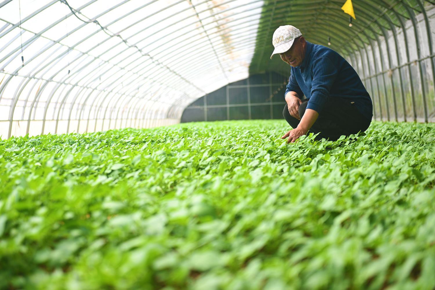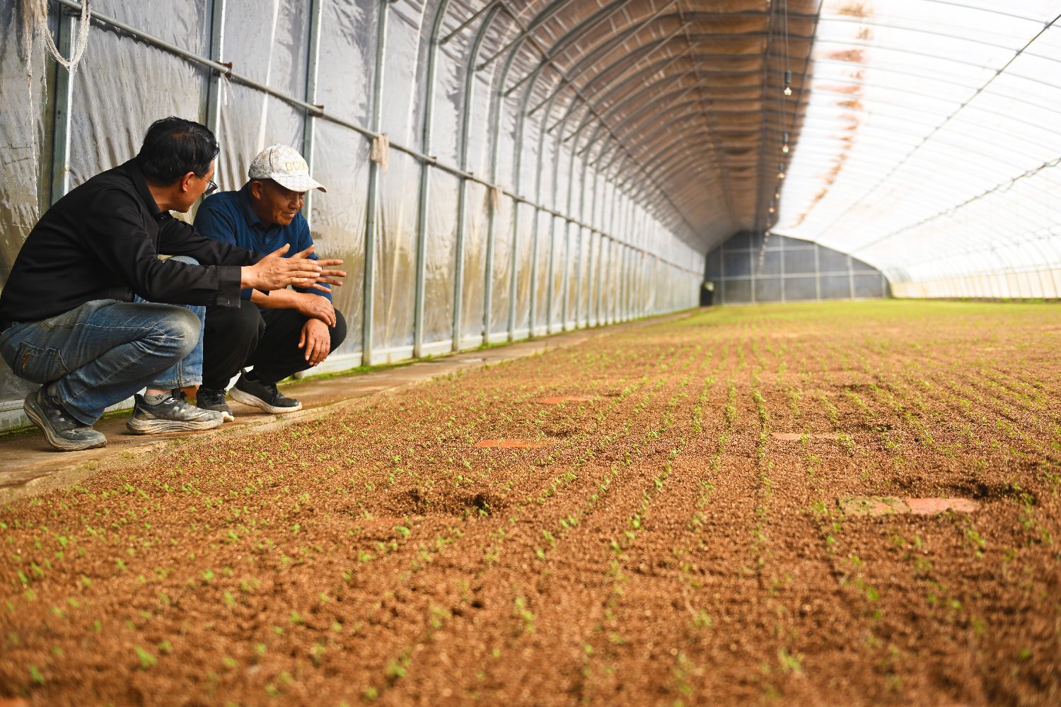 3月29日,位于甘肃省定西市安定区鲁家沟镇小岔口村的马铃薯大棚内种下的马铃薯原原种脱毒苗。