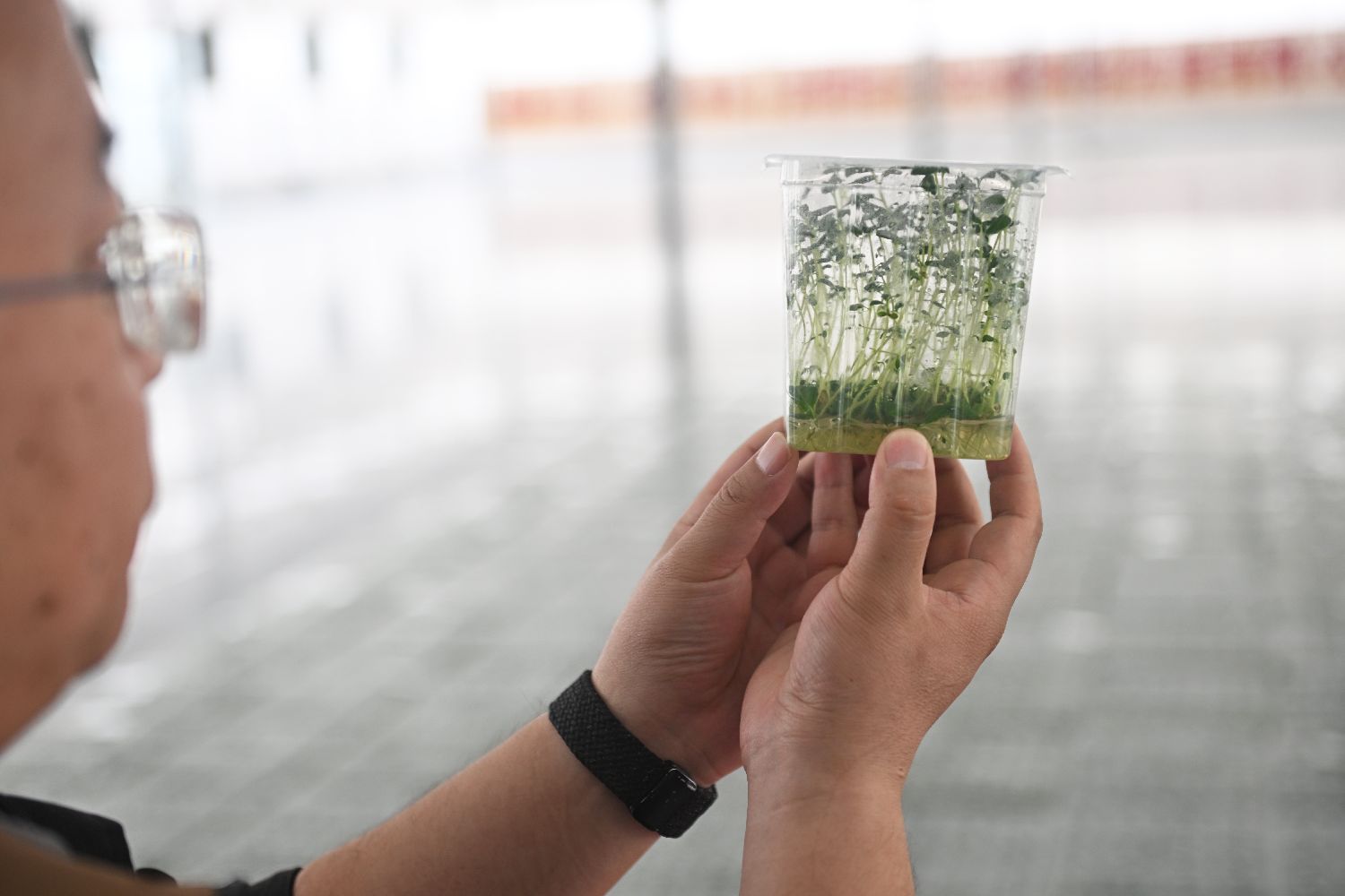 3月29日,在位于甘肃省定西市安定区鲁家沟镇小岔口村的马铃薯产业园组培室内,工作人员查看马铃薯原原种脱毒苗。