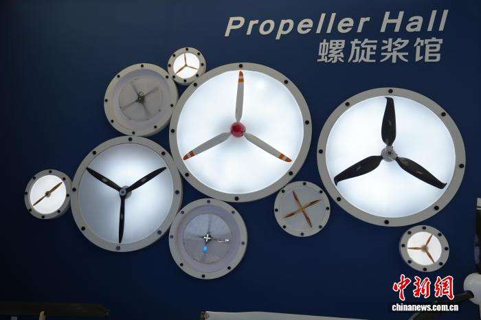 航空小镇展厅内陈列的各类螺旋桨产品。