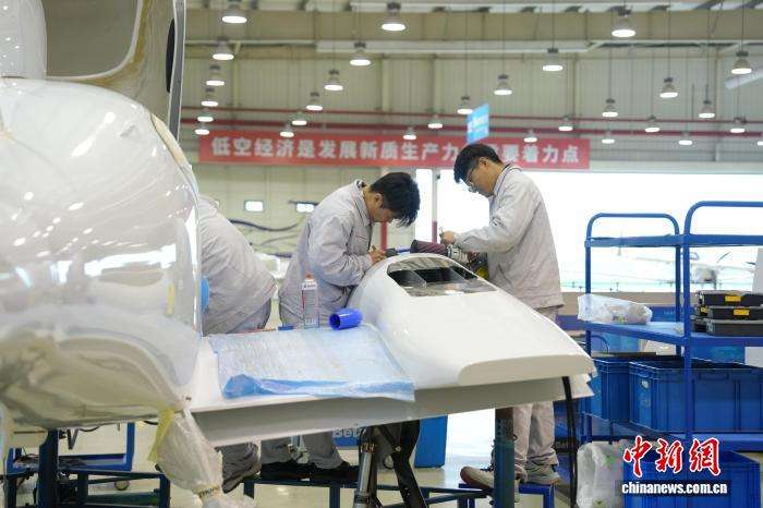中电科芜湖钻石飞机制造有限公司工作人员正在组装飞机。