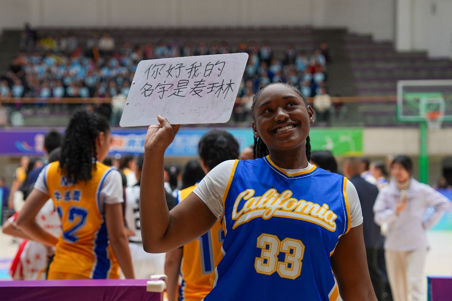 一位美国青少年手写汉语与重庆南开中学学生交流。