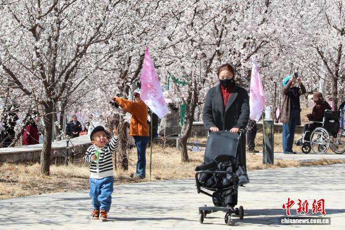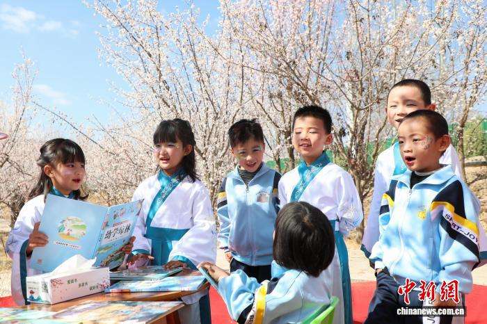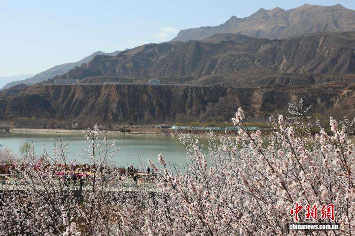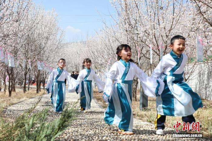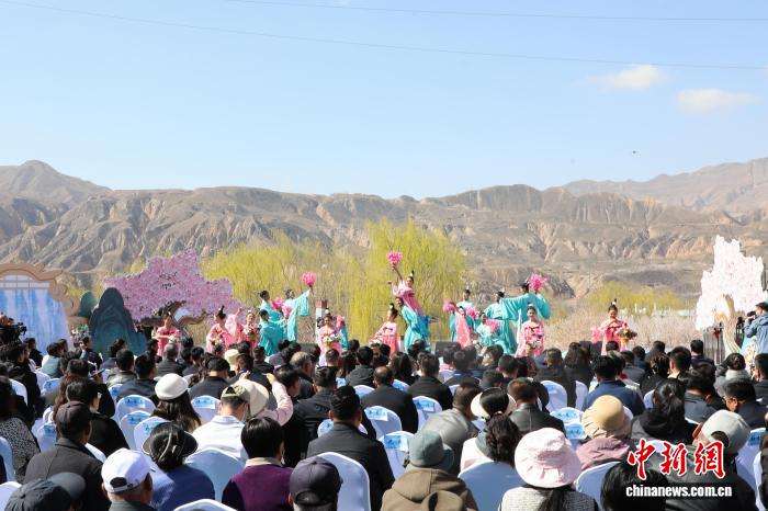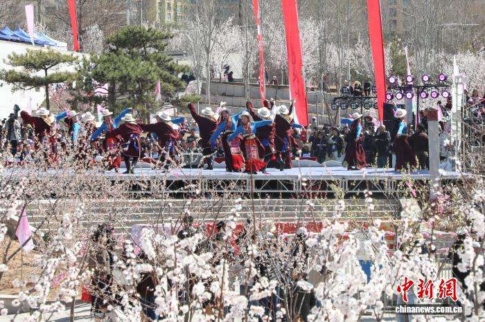 青海化隆县素有“九曲黄河化隆秀”的美誉,黄河流经县域168公里,气候温暖湿润,每年清明节前后,成片杏花竞相绽放,乡野间一片生机盎然。图为3月31日,民众欣赏歌舞表演。