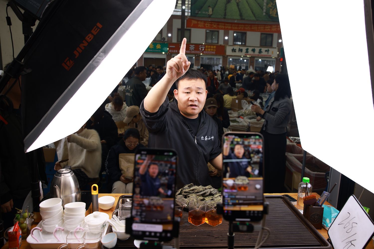3月31日,茶叶市场交易大厅内人头攒动。(无人机照片)