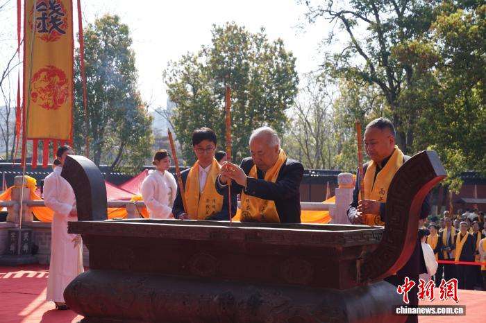 4月2日,在清明恭祭钱王仪式上,钱氏后裔上香祭拜先祖。