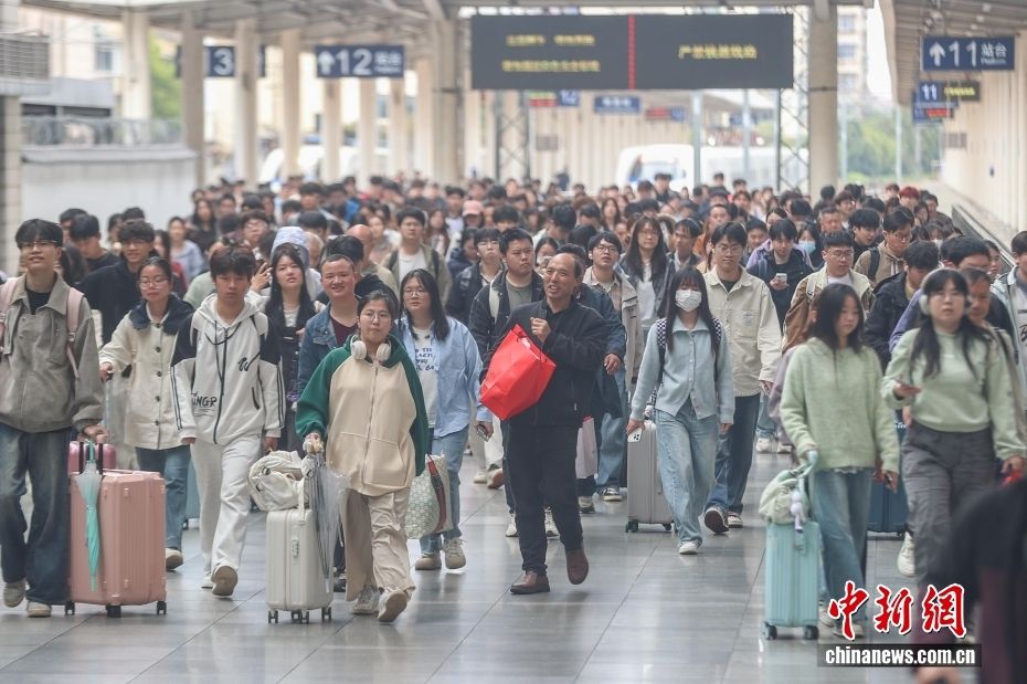 4月6日,福建福州火车站乘坐火车出行的旅客。