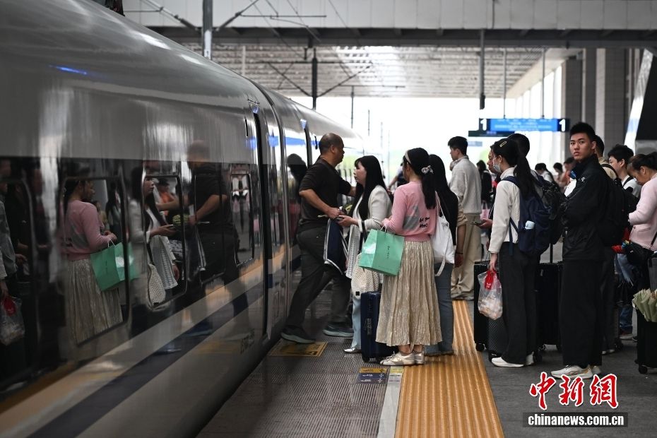 4月6日,中国铁路迎来清明假期返程客流高峰。图为旅客在北京南站乘车。