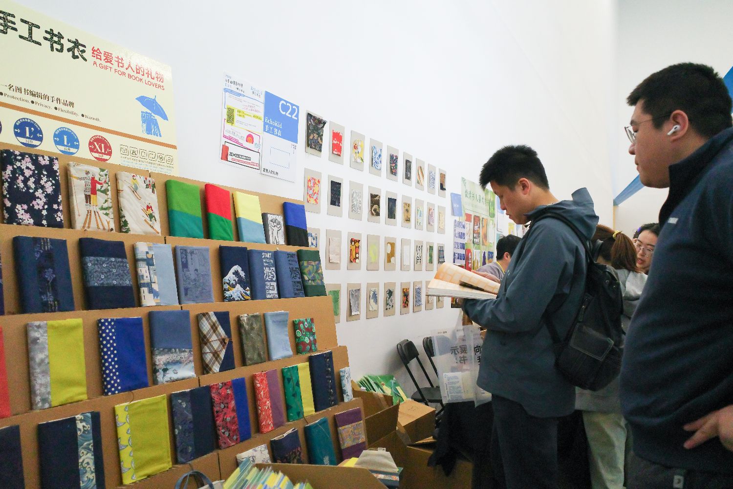 参观者欣赏手工书衣。
