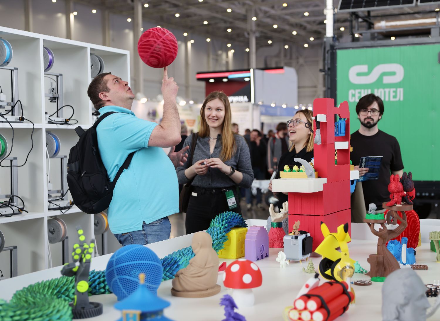 参观者试玩中国企业3D打印的篮球。