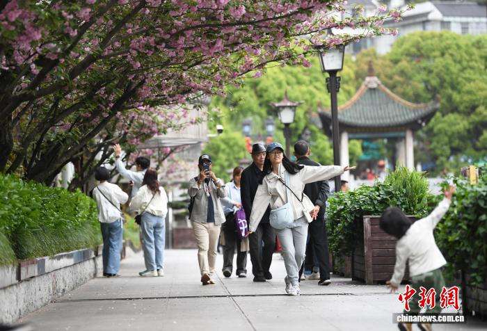 盛开的樱花吸引市民游客赏花拍照。
