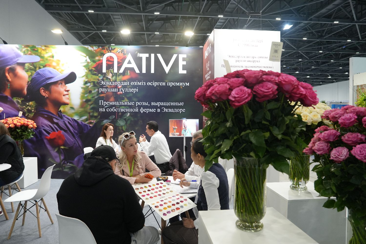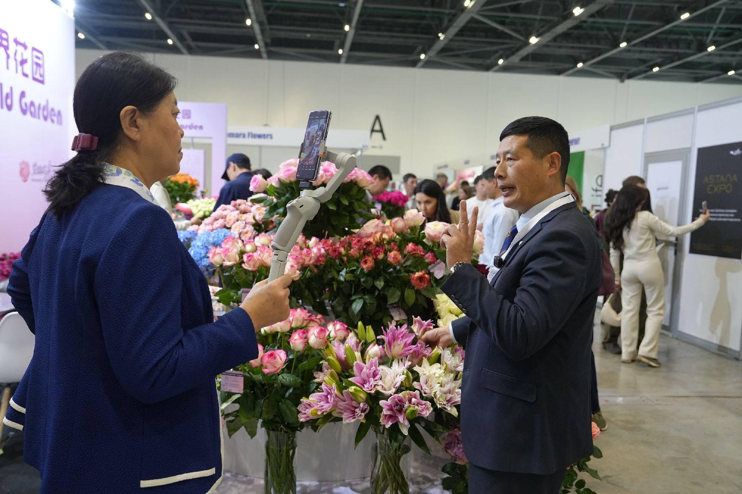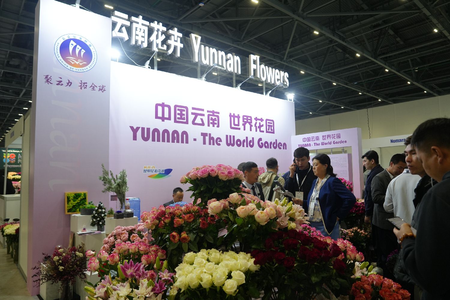当地时间4月8日,哈萨克斯坦阿斯塔纳,第十三届国际花卉与园艺展在世博园国际展览中心开幕。来自荷兰、泰国、中国、肯尼亚、厄瓜多尔等超过20个国家和地区的220多家企业参展,集中展示全球花卉园艺领域的代表性品种和前沿技术。图为中国云南花卉企业组团参展。