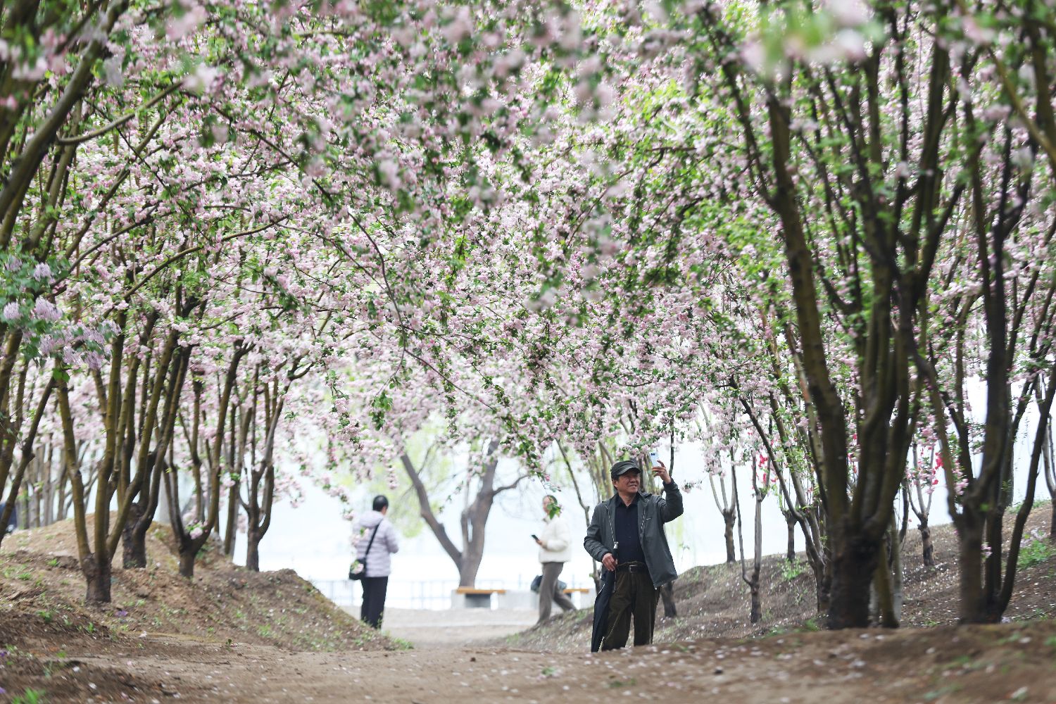 4月9日,位于北京的圆明园第三十一届踏青节开幕。本届踏青节以优美的自然环境为依托,以“花神化身十二美人”为主线,打造集赏花观景、古画沉浸、非遗体验、文艺展演于一体的春日文旅盛宴。此次踏青节将持续至5月9日。图为游客在北京圆明园内踏青游玩。