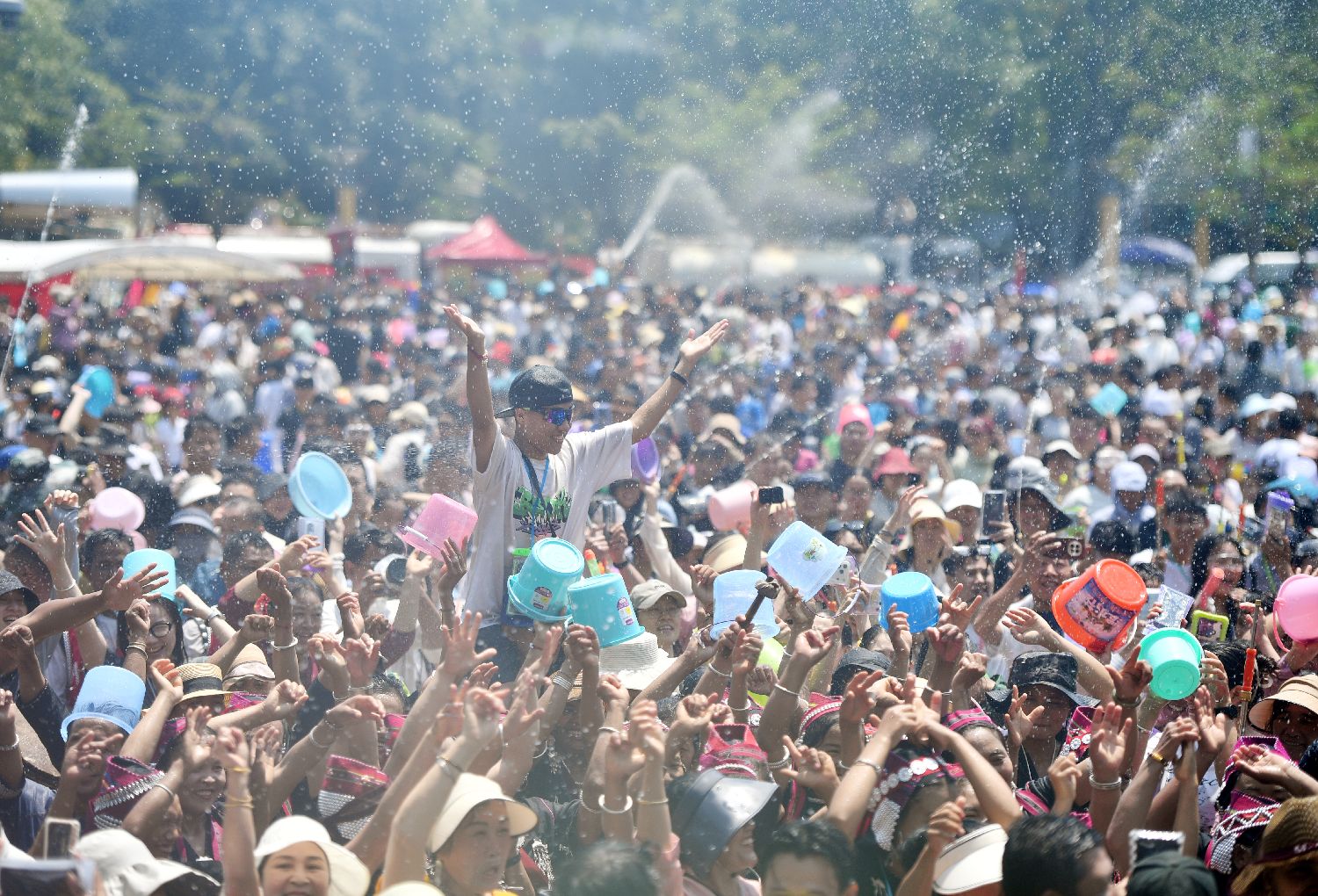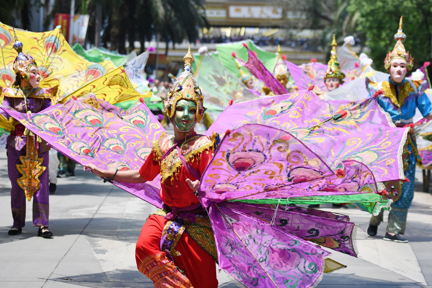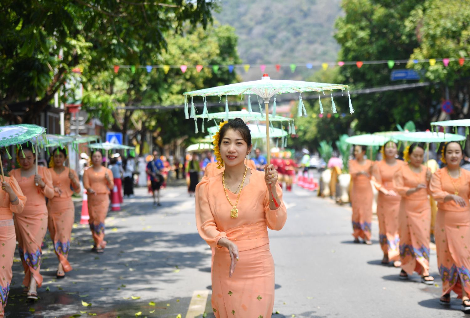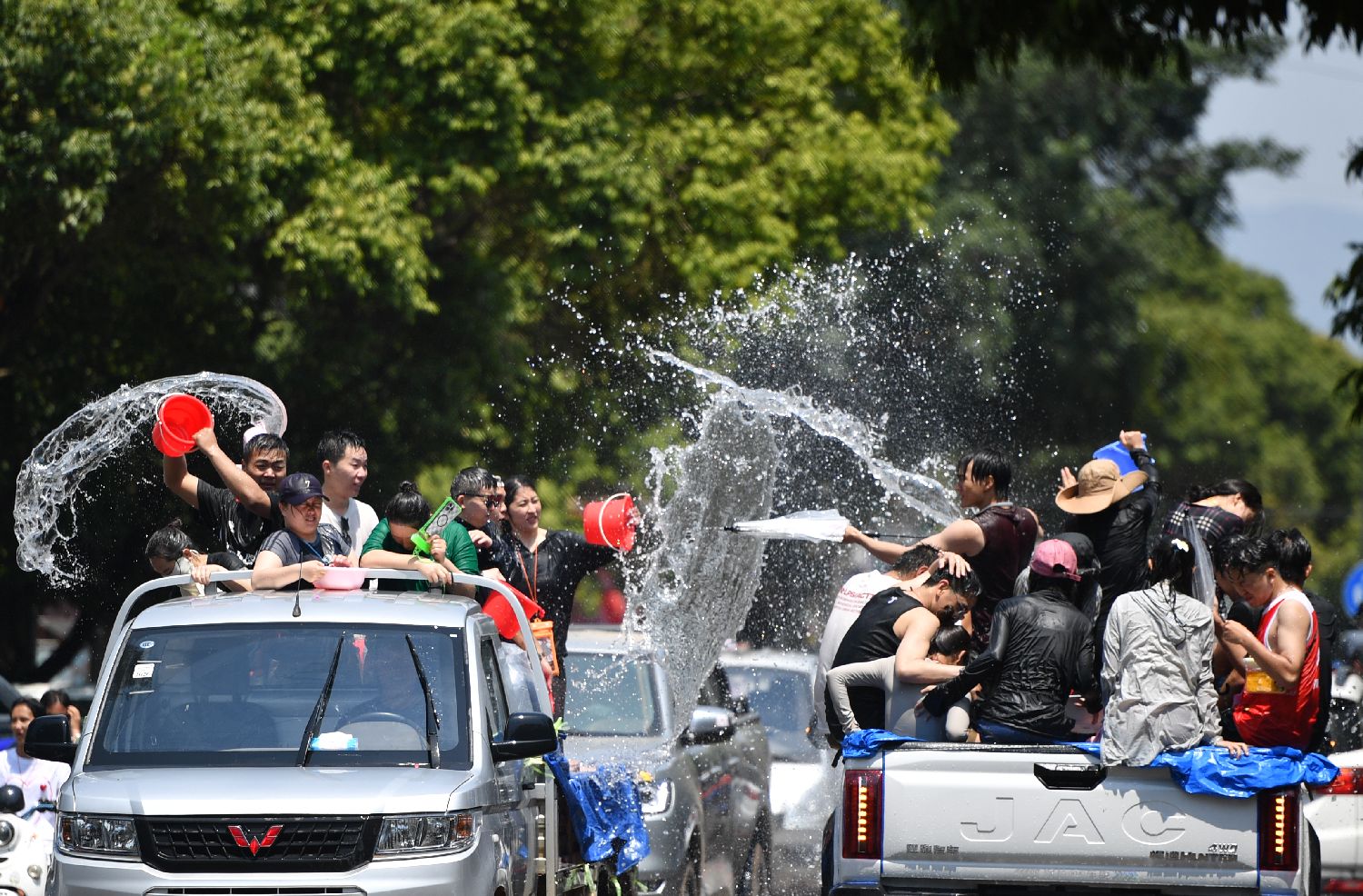 4月12日,云南省普洱市孟连傣族拉祜族佤族自治县迎来泼水节。当地的傣族、拉祜族、佤族等各族民众载歌载舞进行巡游,与来自世界各地的游客同庆傣历1388年泼水盛典。