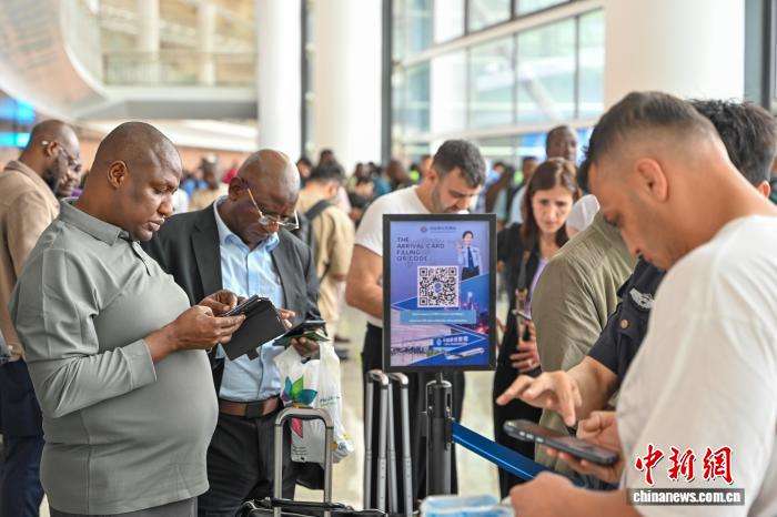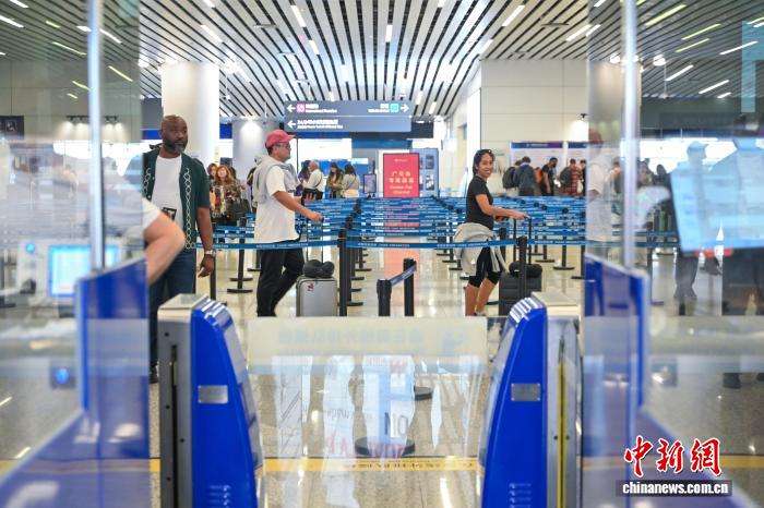 4月13日,外籍旅客在广州白云国际机场T3航站楼办理入境手续。