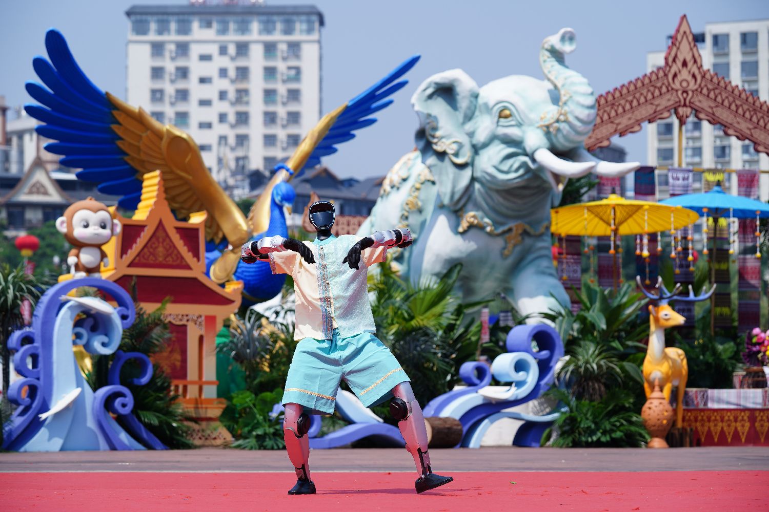 身着民族服饰的机器人进行表演。