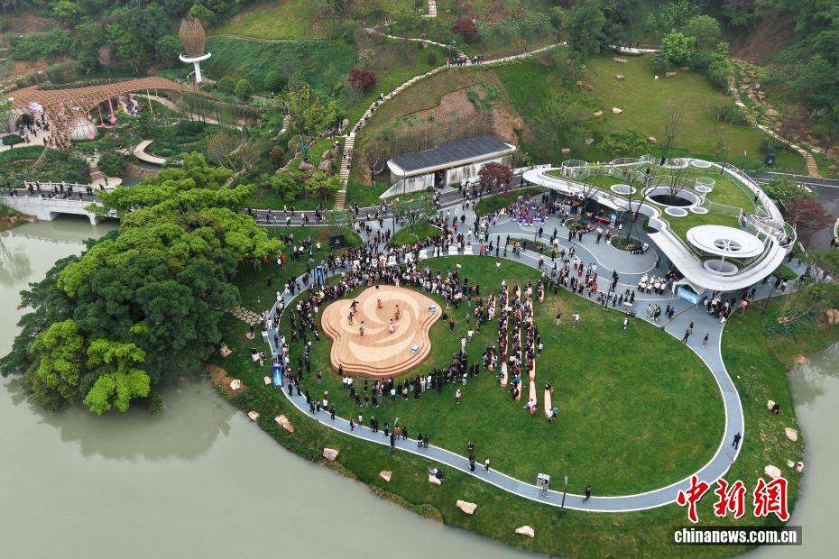 4月15日,第十五届中国国际园林博览会在浙江温州开幕。本届园博会以“诗画山海·共享绿色生活”为主题,聚力打造涵盖“百姓园博、国际园博、先锋园博、文化园博、全城园博”五大特色的国际园林盛宴。据悉,本届园博会展期100天。图为当日,园博园内游人如织。(无人机照片)