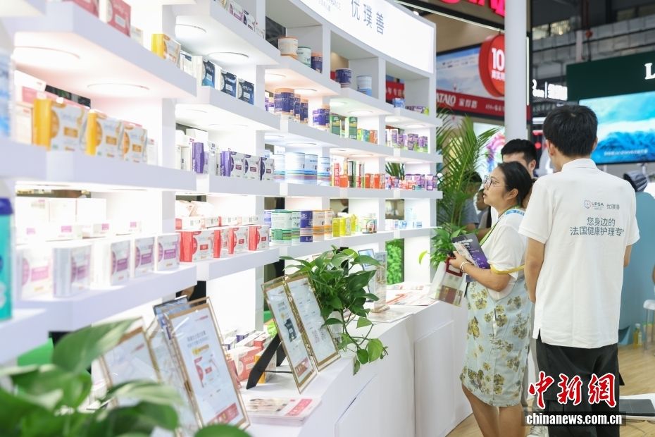 4月16日,海南海口,第六届消博会迎来社会公众开放日。图为参观者在优璞善展区选购保健品。