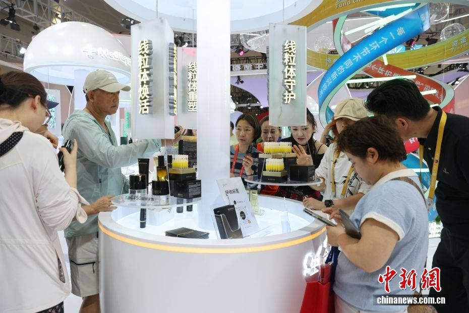 参观者在华熙生物展区选购护肤品。