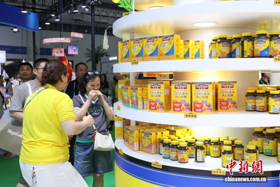 参观者试吃保健软糖。