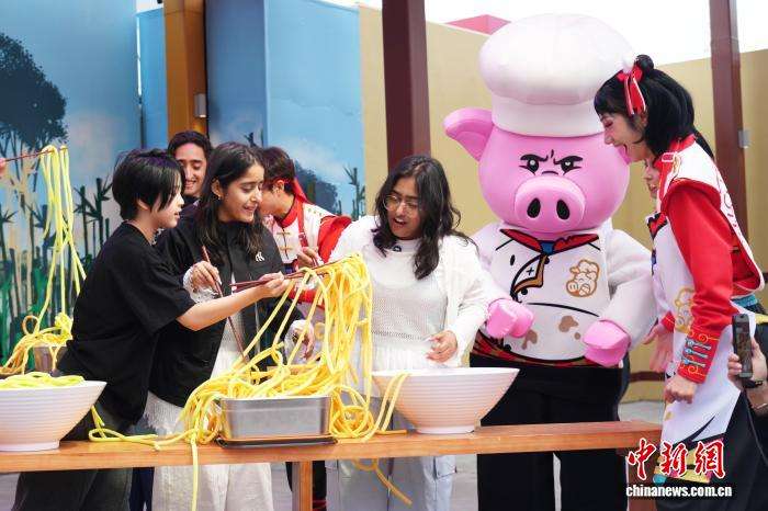 4月16日,上海乐高乐园“悟空小侠”主题区内的“朱大厨美食争霸”互动项目,迎来外籍游客参与体验。