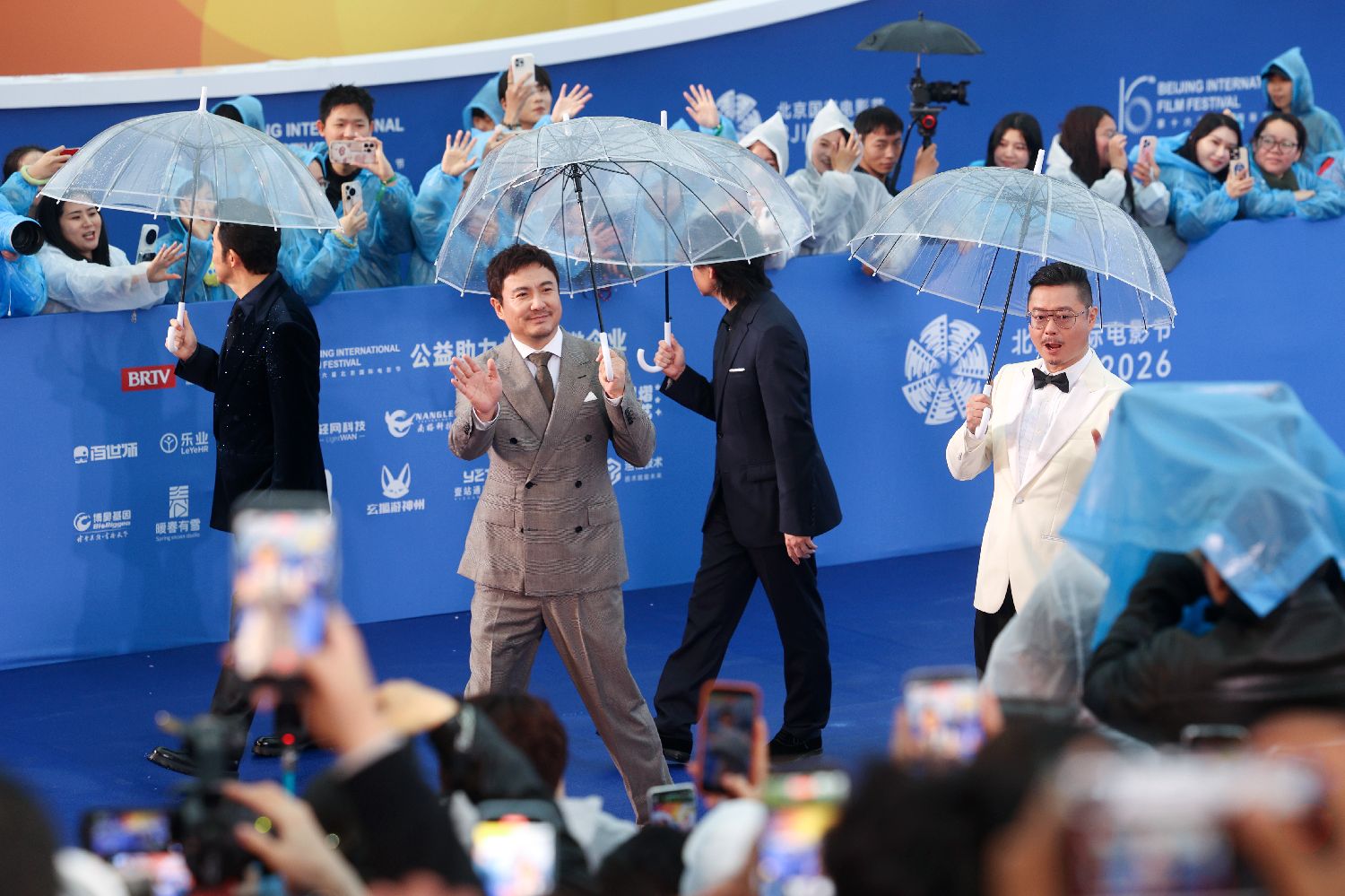 4月16日,电影《四渡》剧组亮相红毯。(李久骏/摄)