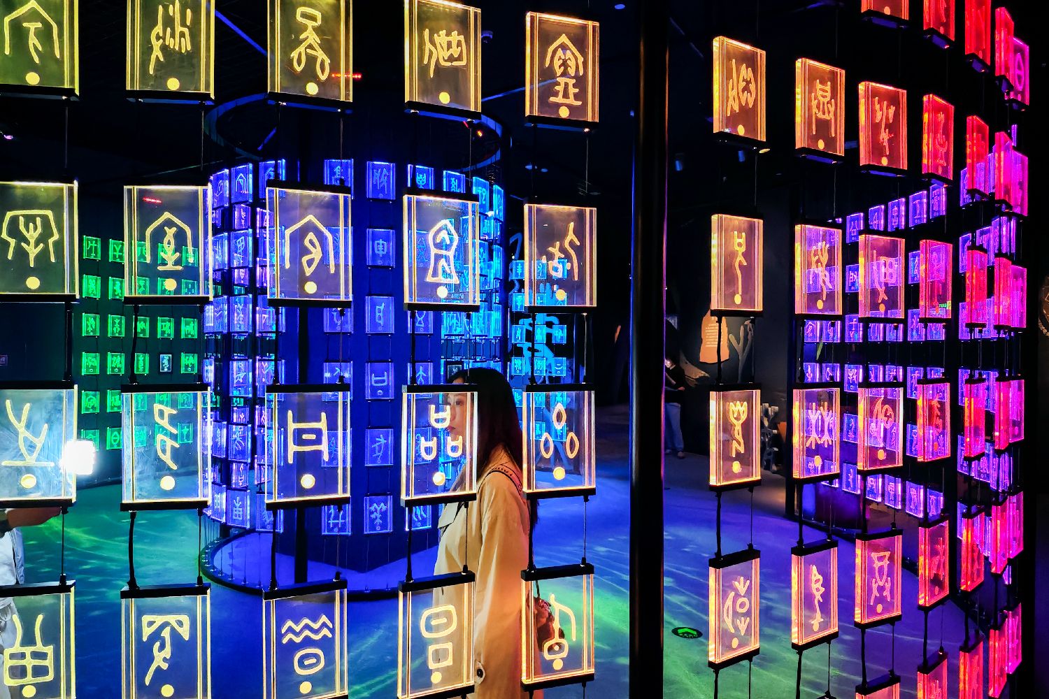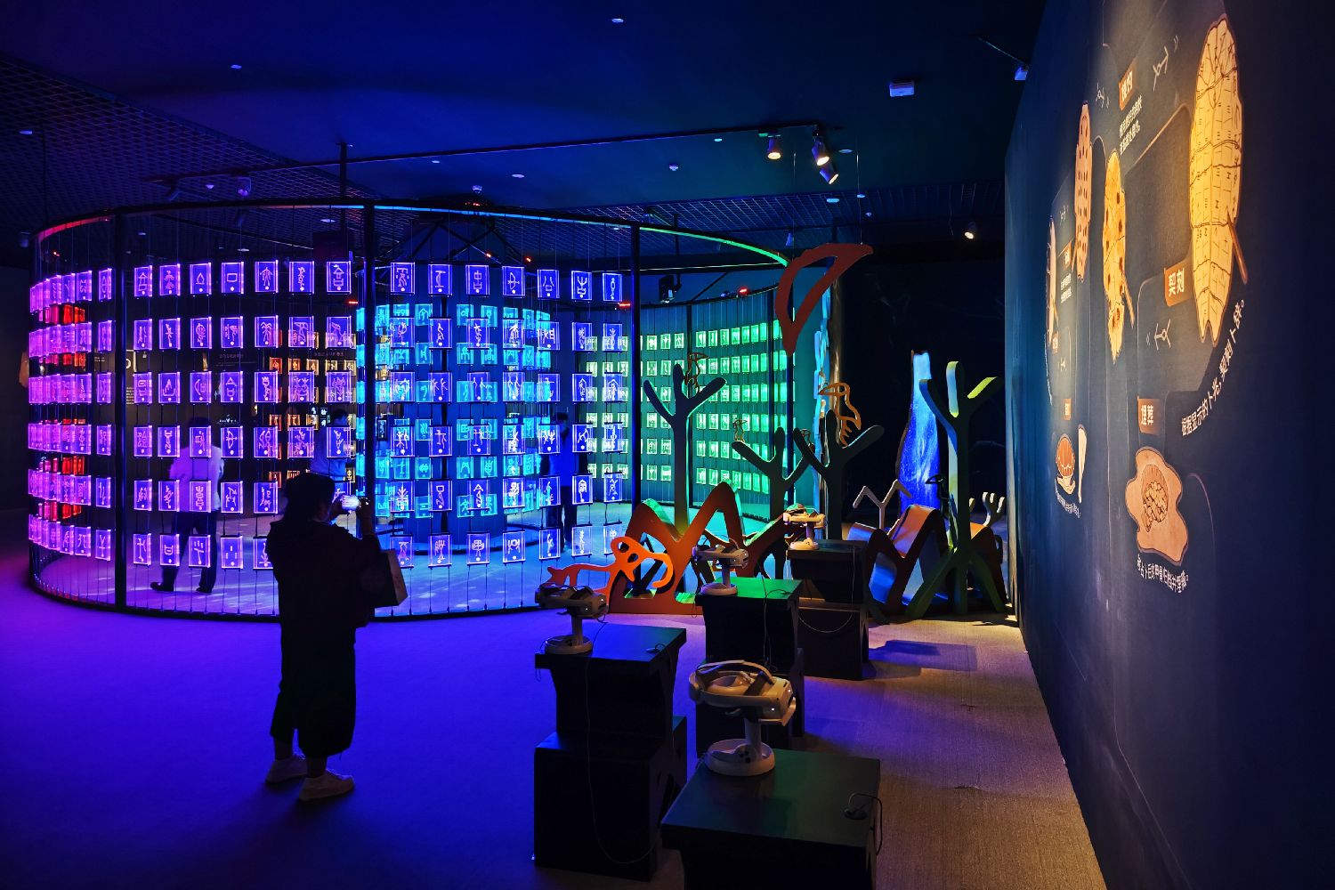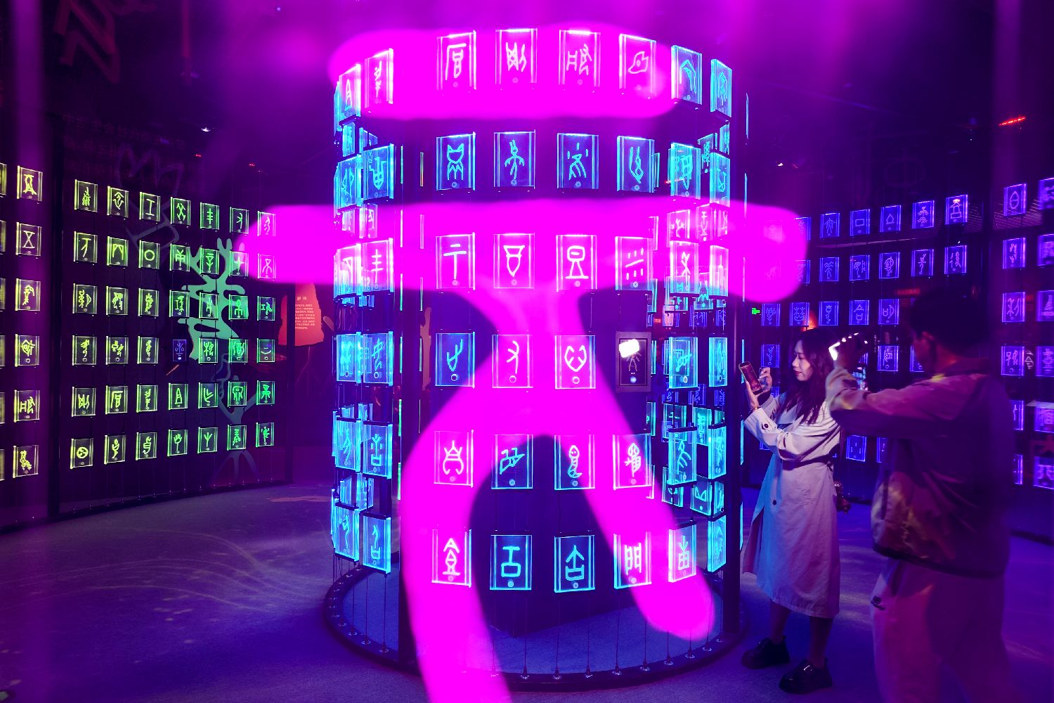 4月21日,观众在甲骨文沉浸式互动体验数字展拍照。