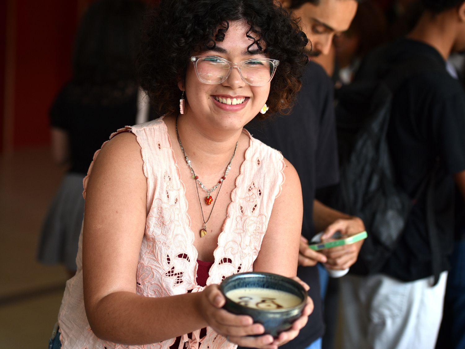 4月22日,在巴西米纳斯吉拉斯州贝洛奥里藏特市,庆祝中巴文化年的《万里茶道与咖啡之路特别巡展》活动亮相。图为米纳斯吉拉斯联邦大学学子利赞德拉·斯卡托林在巡展现场体验以茶作画的中国传统茶百戏点茶技艺。