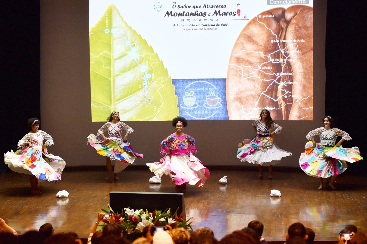 4月22日,巴西米纳斯吉拉斯联邦大学学子在《万里茶道与咖啡之路特别巡展》开幕式上表演舞蹈,展现巴西东南部风情。