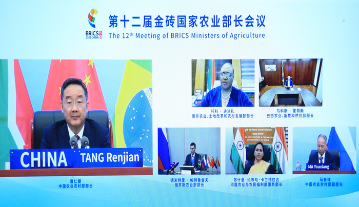 6月8日,第十二届金砖国家农业部长会议以视频形式召开。会议以“深化金砖合作,促进农业农村协同发展”为主题,重点围绕全球粮食安全、减贫等领域,就进一步深化农业农村领域务实合作进行了深入交流。