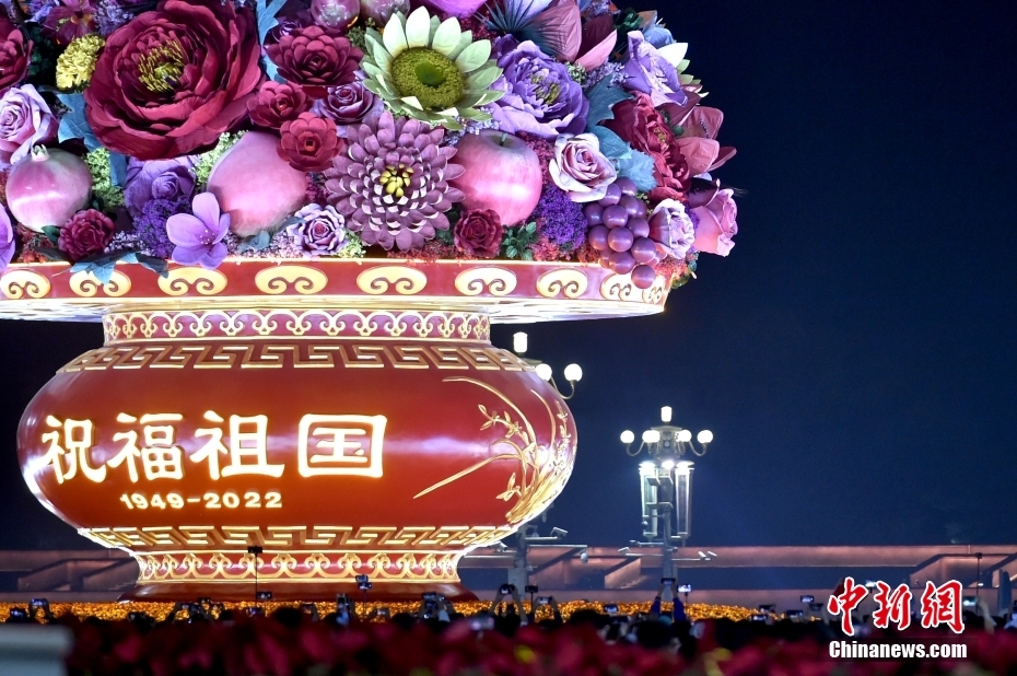 2022年10月1日,中华人民共和国成立73周年,北京天安门广场举行国庆升旗仪式。中新网