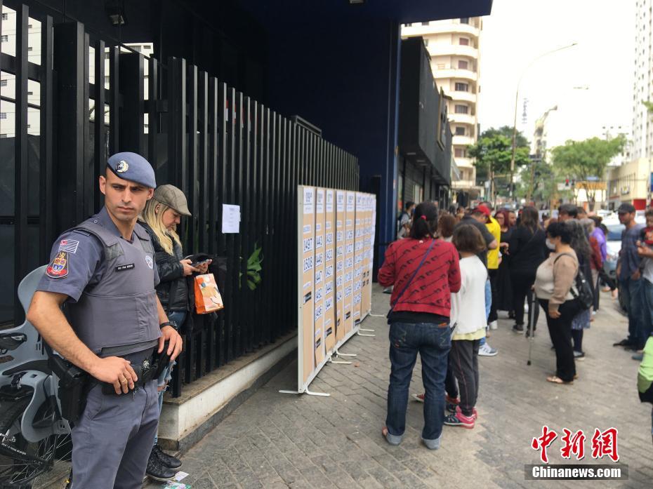 10月2日,选民在巴西圣保罗一个投票站参加投票。中新社