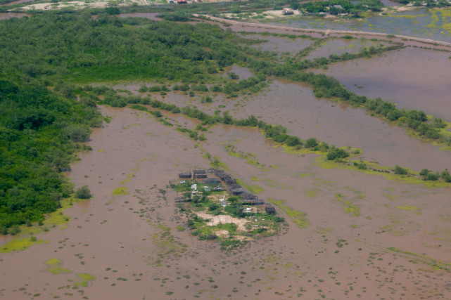 10月10日在哥伦比亚瓜希拉省拍摄的飓风“朱莉娅”登陆后引发的洪水灾情(无人机照片)。新华社
