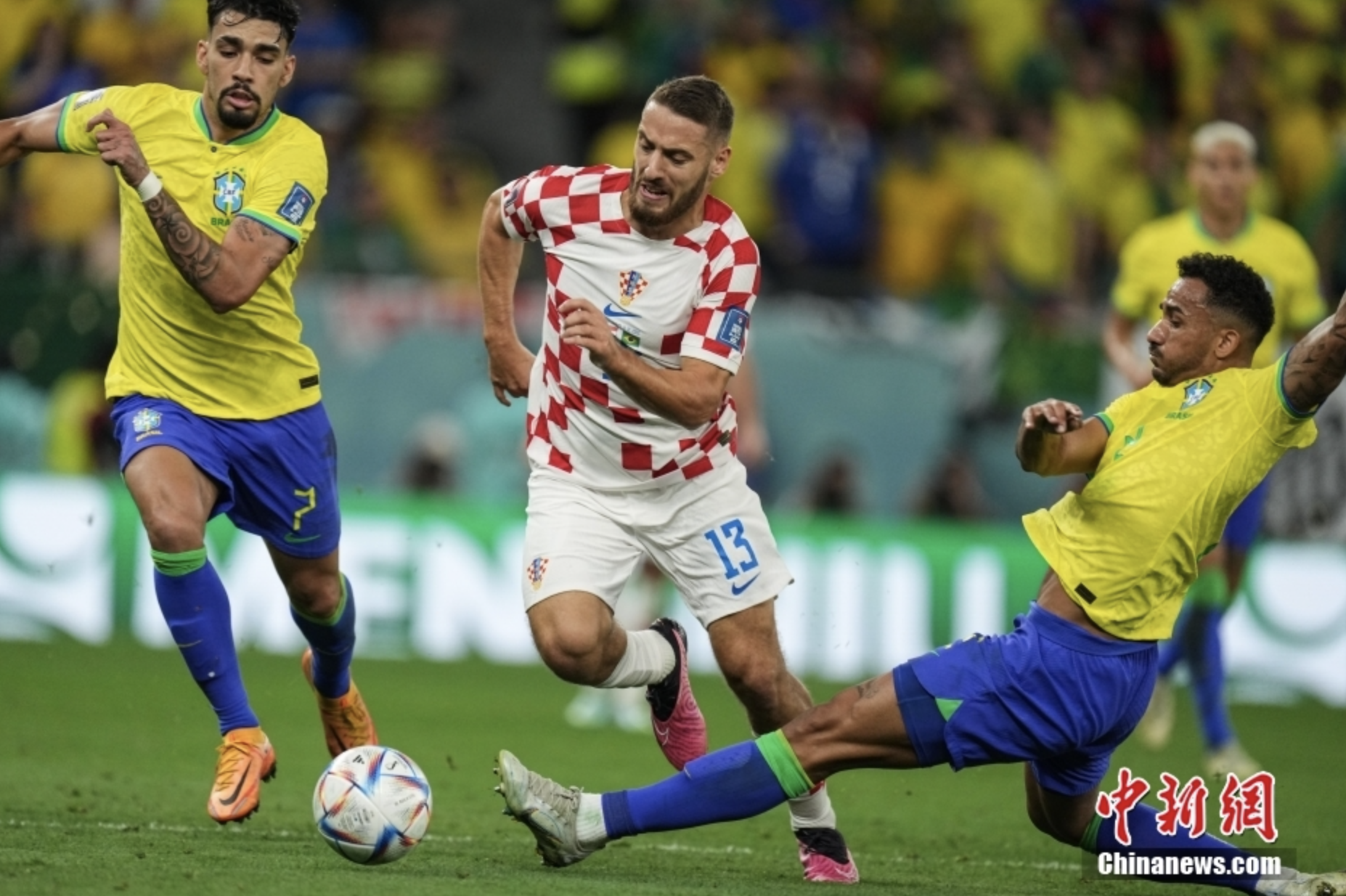 12月9日,巴西队和克罗地亚队在卡塔尔世界杯1/4决赛中比赛。中新社