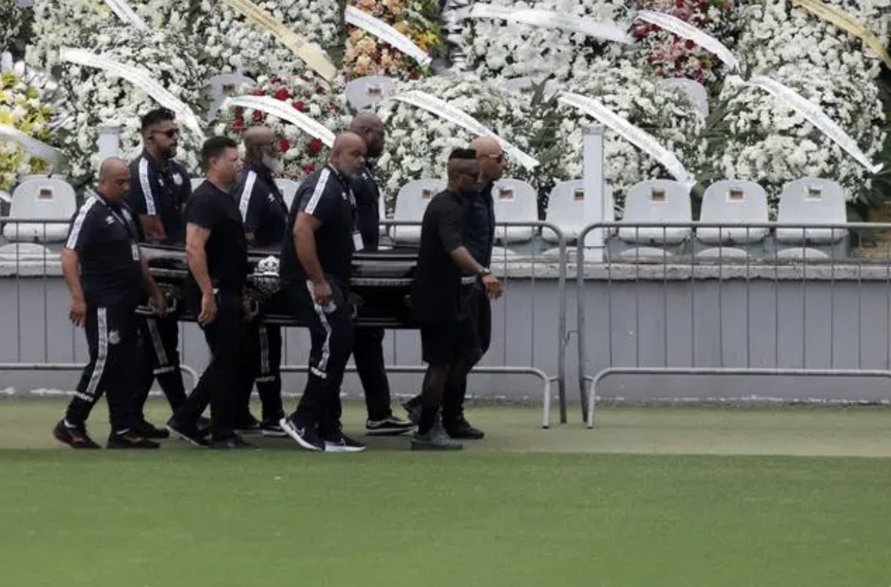 1月2日,“球王”贝利的棺柩被送进维拉贝尔米罗体育场。新华社