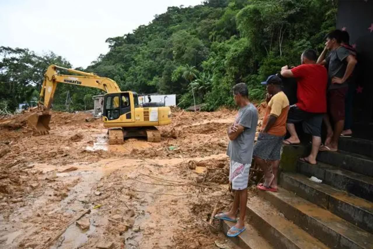 2月20日,大型机械在巴西圣保罗州圣塞巴斯蒂昂清理泥土。新华社