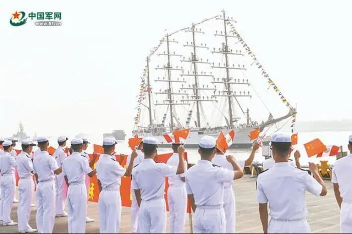 中国军网报道,当地时间8时许,东部战区海军某基地军乐队在码头奏响迎宾曲,现场拉起欢迎横幅,为到访的“联合”号风帆训练舰举行了热烈的欢迎仪式。