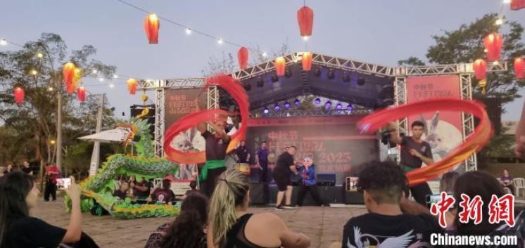 在活动现场,巴西民众沉浸式体验中秋之乐。一笔,两笔,三笔,勾勒出一只毛茸茸的小兔,一横,一竖,一撇,书写出“中秋快乐”,毛笔带给巴西民众的新鲜感受化作了具象跃然纸上。摸摸会眨眼的狮子,举着小龙在公园里游走,扎马步出拳,孩子们的一举一动都表达了他们对中国功夫的好奇。遥远的中国符号此刻正鲜活具体地展现在了地球另一端的巴西坎皮纳斯。