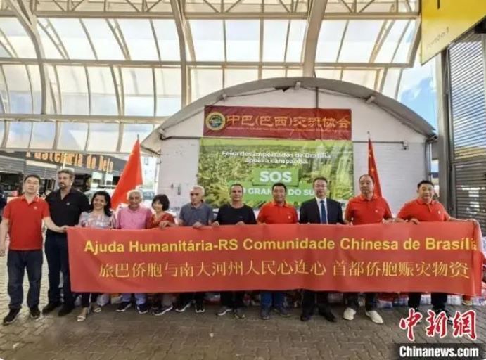 当地时间5月14日,华侨华人向南里奥格兰德州灾区捐赠赈灾物资。中新网