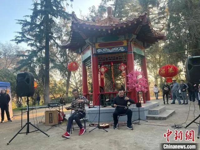 当地时间7月14日,智利圣地亚哥市,两位中国民乐爱好者在中国文化展上演奏。