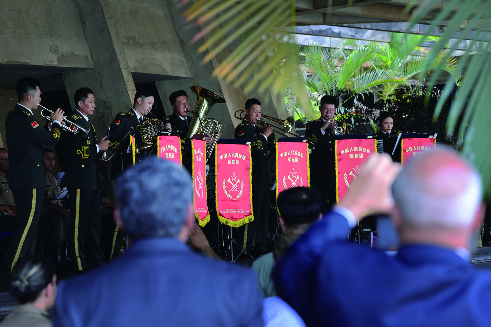 9月23日,中国军事文化周“中国日”活动在巴西国防部高等防务学院举行,中国人民解放军国际传播代表团军乐分队与巴西总统卫队军乐团联合演出。中新社